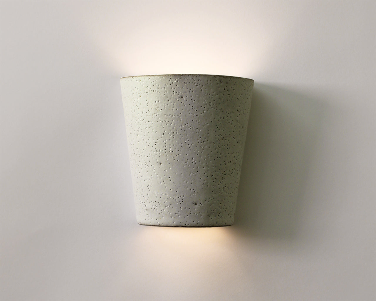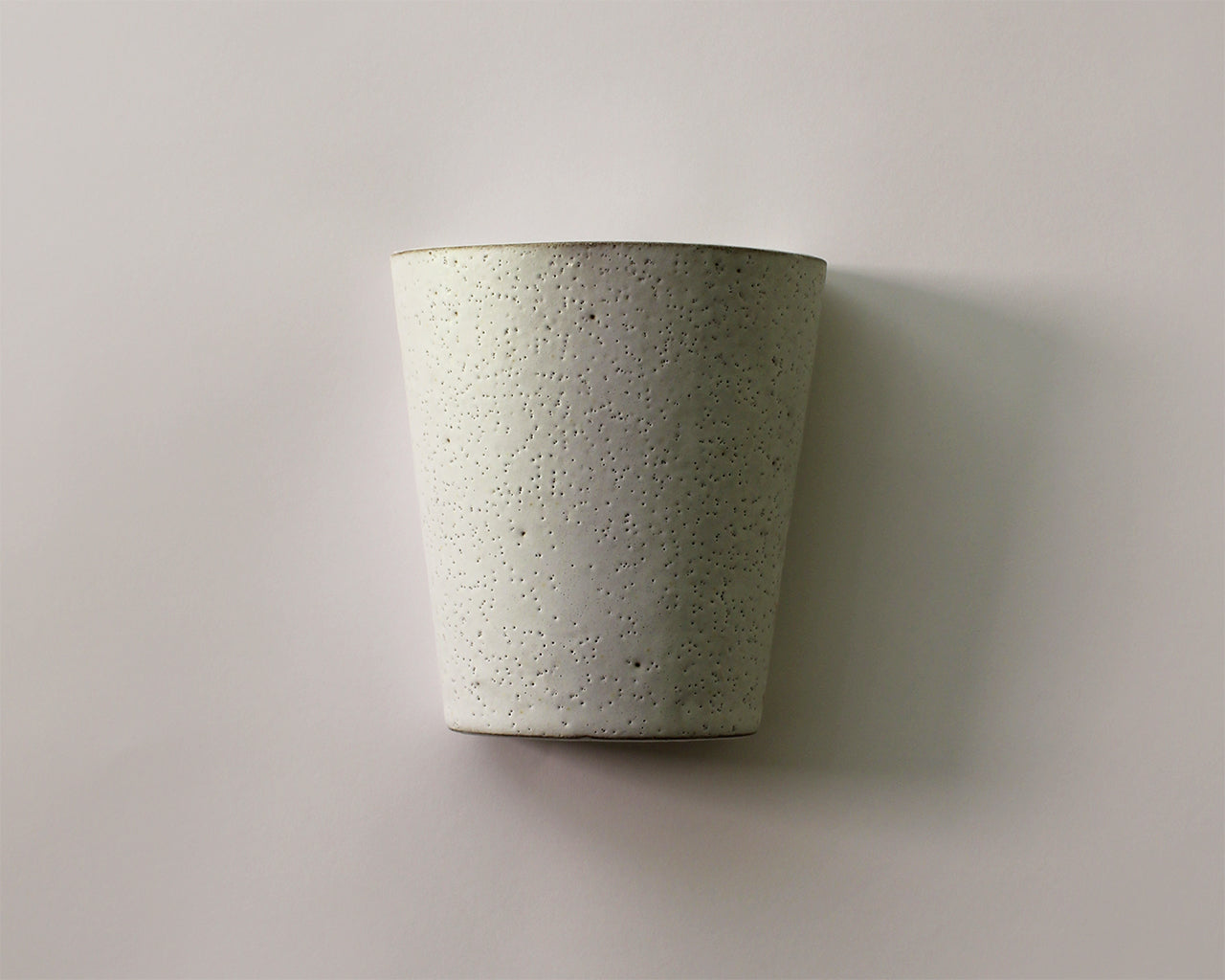 Rounded, tapered, wall-washing, stoneware sconce with a matte, white, pitted glaze. Sold individually, three pieces available.